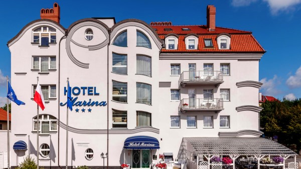 Marina Hotel 3* er et hotel med en rigtig god beliggenhed midt i Misdroy kun få hundrede meter fra kurparken, strandpromenaden og molen. Hotelværten taler norsk, og forstår også fint dansk. Der er elevator til alle etager. Man spiser godt i hotellets restaurant, hvor man også kan nyde godt af barens tilbud. Værelserne varierer i størrelse og indretning. Alle værelser har TV, telefon, gratis Wi-Fi samt badeværelse med bruser og føntørrer.