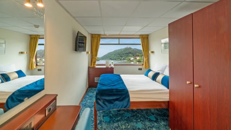 Alle kahytter er over vandoverfladen med vindue, moderne indrettet med dobbeltseng eller 2 adskilte senge, bad og toilet, føntørrer, TV, radio og safe. Kahytterne er fordelt på hoveddækket og øverste dæk.